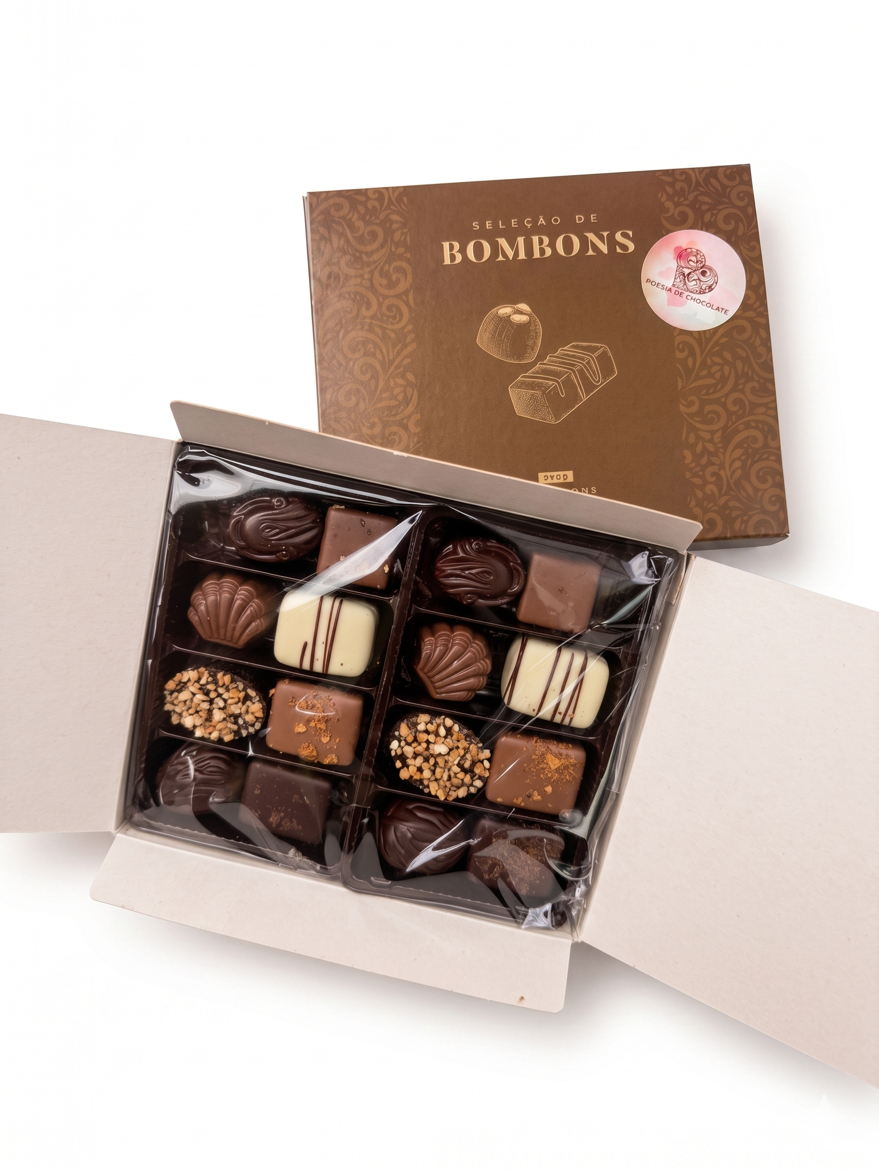 Se procura o equilíbrio perfeito entre a tradição e a alta chocolataria, a nossa Caixa de Seleção de Bombons 240g é a escolha ideal. Cada caixa foi meticulosamente pensada para oferecer uma viagem de sabores distintos, apresentando 16 bombons que combinam texturas aveludadas com recheios surpreendentes.